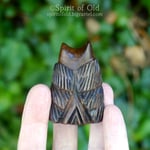 The owl is newly carved from beautifully rich-toned Saxon burr bog oak. The wood is around 1,100 years old and was naturally preserved in the banks of a river in the Norfolk area of Britain. The base has a bindrune for protection added.