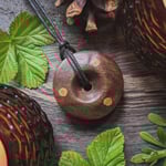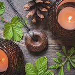 Within the pendant sits our protective herb blend, containing herbs gathered with care from the land surrounding the sacred site of Stonehenge, and sealed in place with a plug of mistletoe.