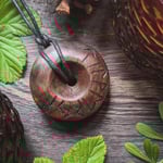 This Faery Ring pendant is carved from wood approximately 3,200 years old, from the Glastonbury area of southern Britain — the fabled Isle of Avalon. Rich and deep in colour with lighter streaks within, it feels full of history and positive energies.