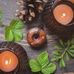 Within the pendant sits our protective herb blend, containing herbs gathered with care from the land surrounding the sacred site of Stonehenge, and sealed in place with a plug of mistletoe.