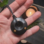This Faery Ring pendant is carved from ancient bog oak approximately 3,000 years old, sourced from Co. Roscommon in Ireland. Rich and deep in colour, it carries a tangible sense of age and positive energies - a meaningful piece to wear close to the skin.