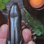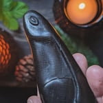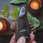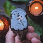 The piece stands freely on any flat surface and is pleasingly tactile. It is filled with our protective herb blend, containing herbs gathered with care from the land around the sacred site of Stonehenge, and sealed with a plug of mistletoe. A bindrune for protection has been added to the base.