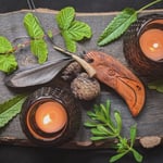 The eagle is filled with the same protective herb blend, incorporating herbs gathered respectfully from the land surrounding Stonehenge, and sealed within by a plug of mistletoe.