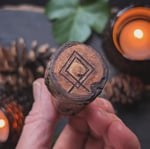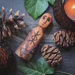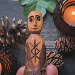 On the front of the figure, a deeply carved bindrune for protection, designed to be traced with your fingertips - enhancing your connection to its energy. The base has a bindrune for ancestral connection added, and the eyes are finished with garnets.