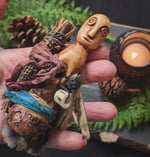 The figure is incredibly tactile, so feels good to hold during meditation or for ritual use. She carries a protective root and herb bundle which includes wormwood, and enchanter's nightshade. Enchanter's nightshade has long associations with witchcraft and sorcery. It's considered to aid inner conflict and has been traditionally used to find balance by bringing opposites together. Binding, hexing and enchantment is also associated with this beautiful herb.
